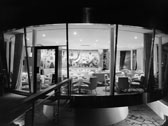 restaurant. It is truly stunning to see photos from the 1950s, as diners sit in the Grill Room insouciantly sawing away at their steaks, smoking cigarettes and swilling martinis while the Miro masterpiece sits literally inches from the backs of their banquette, ready to catch a wayward flick of meat from a fork or splash of gin from a glass. Calder’s mobile soared in the main lobby, Steinberg’s view of Cincinnati covered the South wall of the 8th floor Skyline Room restaurant while Davis’ Plexiglas light sculpture presided over the Terrace Bar on the same floor.