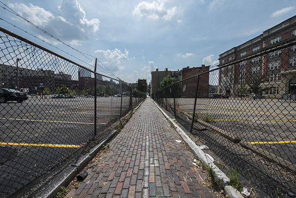 Historic brick alleys such as Grear and Bunker bisect the blocks, pedestrian chutes surrounded on both sides by a charmless fabric of corroded fences and concertina wire. In what should be a walkable pedestrian district in the heart of our urban core, we’re instead greeted by a black hole of parking, harkening back to the days of suburban flight, automobile domination and urban devaluation — when cheap shopping-mall-style parking was offered as a sop to lure fleeing suburbanites back into the scary city.