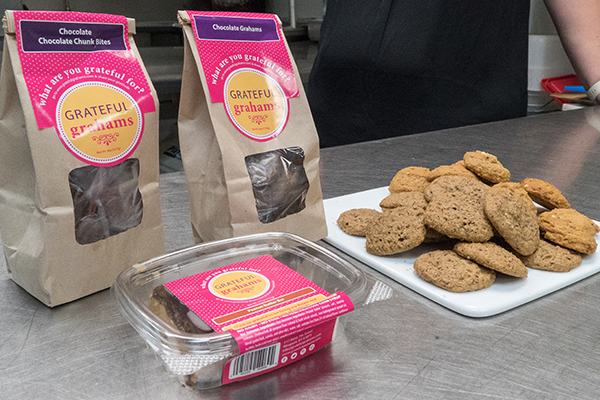 In 2010, Rachel DesRochers found herself unemployed and at home with a new baby. She decided to pursue her longtime passion for baking and created Grateful Grahams, she says, with “a message of gratitude.” She is not only grateful for what she has, but wants to be able to spread the message of gratitude to her customers. DesRochers’ take on traditional graham crackers is soft and flavorful, with almost a cookie- or cake-like texture. “We kind of say we’re a gratitude company that makes the cookie, not a cookie company that talks about gratitude,” says DesRochers.