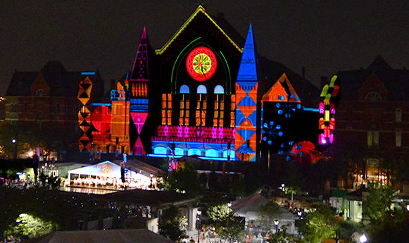 “That first year of LumenoCity was a real revelation,” Reynolds says. “Steve and I were hoping it would be a fun diversion and creative challenge, but with the amazing community turnout we really felt the weight of its civic impact, how it brought so many people to Washington Park and how it gave courage to businesses to open afterwards in Over-the-Rhine. We never imagined a light show would mean so much to so many people, including us.”