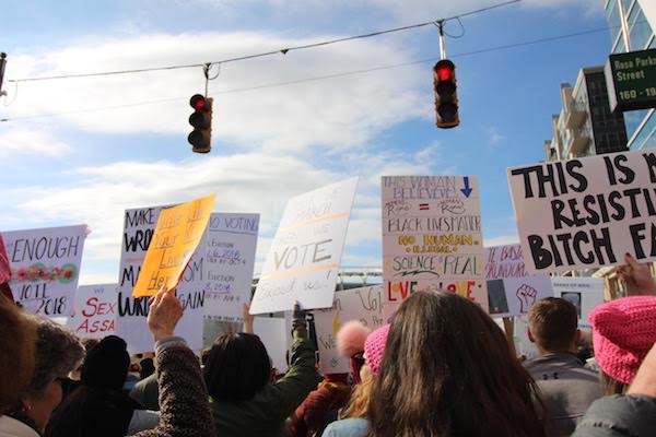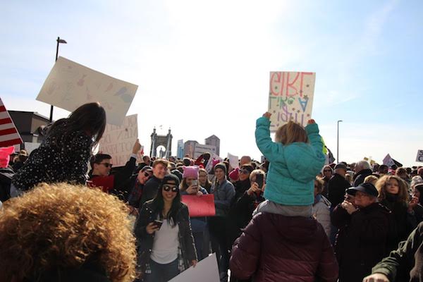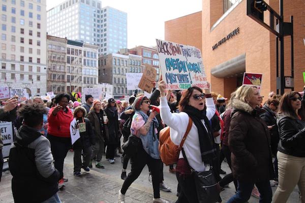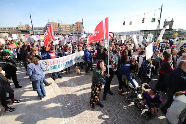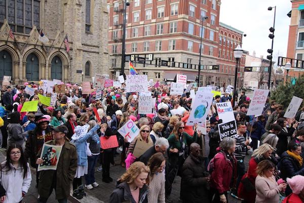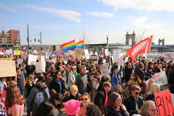 On Saturday, Jan. 20 — one year after Donald Trump was sworn into office — locals by the thousands gathered downtown for the second annual Women’s March. Protestors met up near the National Underground Railroad Freedom Center and marched 1.5 miles along Race Street and back down Vine.