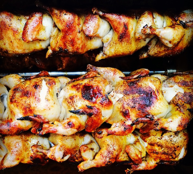 Originally, Pesola set out to do a healthier take on gyros, which are popular in his native Chicago. But after a few tastings, he realized chicken was the way to go. He started with an eight-bird rotisserie at Findlay Market and increased to a 40-bird rotisserie because he kept running out.