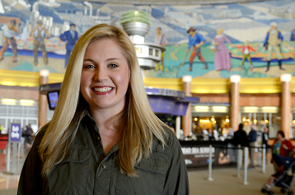 While some actors and actresses wait tables between stints on stage, 24-year-old Brittany Barker talks the Dead Sea Scrolls with guests at the Cincinnati Museum Center, where she works as a Visitation Enhancement Specialist.