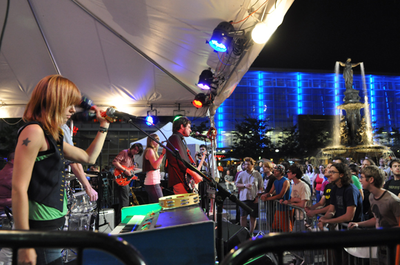Imagine how Fountain Square Managing Director Bill Donabedian felt last summer when he invited such sought-after national and international indie rock acts as Camera Obscura, Neon Indian and We Are Scientists to play the Friday night MidPoint Indie Summer event on the Square. Picture the look on his face as the musicians arrived to find, well, let’s call it ‘modest’ staging and lighting.
