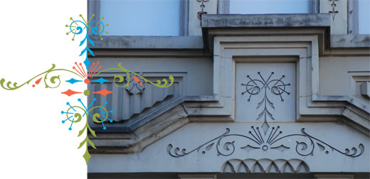 Drodz started designing coasters as Visualingual’s first offering. Early designs incorporated their new neighborhood’s wealth of Italianate architecture.