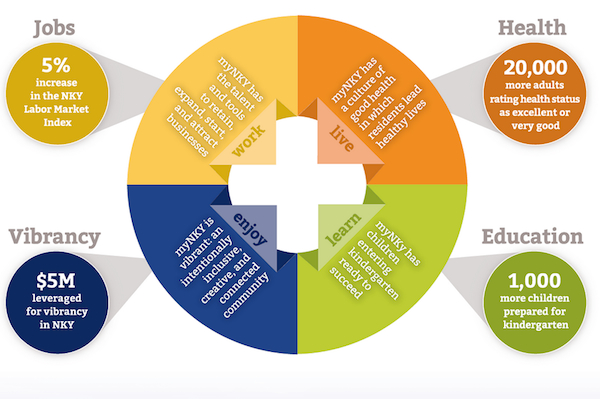 Skyward, formerly known as Vision 2015, is responsible for developing and managing Northern Kentucky’s strategic plan, myNKY. After months of intensive research and feedback from the community, Skyward found that health was a major concern in the community — so it became one of the plan’s four main focus areas.