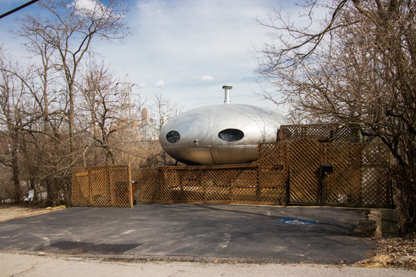 Finnish architect Matti Suuronen explored the limits of plastic as a building material in a quest to develop affordable structures that were easy to build and move. His Futuro designs were constructed of reinforced plastic and served as residences, banks, and even military observation posts. Unfortunately for Suuronen, the 1970s oil crisis not only caused gas shortages but also drove the price of petroleum-based products like plastic into the no-longer-affordable range. Less than 100 Futuro structures were manufactured and installed, including the Covington residence.