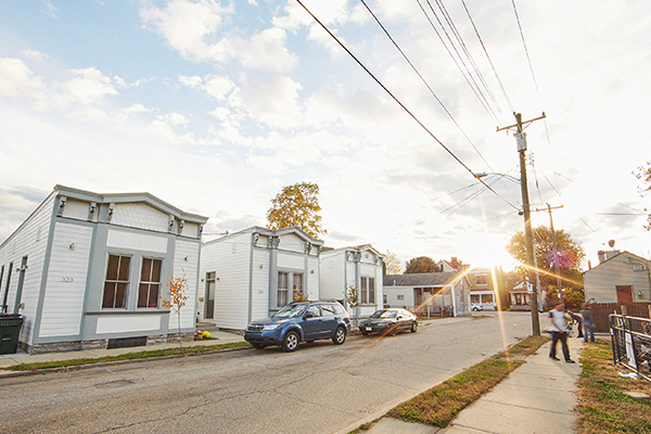 The Center for Great Neighborhoods saw the potential in turning these small homes into live-work spaces for artists. The exteriors of the six remaining shotgun houses were recreated by combining the surviving historical features of the row. The interiors, however, were too deteriorated to preserve, and needed modifications to appeal to a contemporary buyer. The new floorplans allowed for a more open feel and separated the studio space from living areas. All six homes sold before renovations were completed in 2014.
