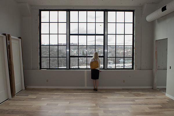The renovation process included exposing the original brick and ceilings, as well as opening up the original windows. Residents will be able to actually open their windows, which Neyer says is uncommon for a historical reuse project.