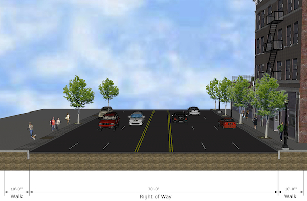 At a public meeting March 1 at Woodward Theater, Transportation and Engineering representatives presented seven “conceptual options.” It seemed clear they currently support a five-lane option, which would reduce the existing roadway width by 20 feet (to 50 feet) and return those 20 feet (and existing sidewalks) to development space.
