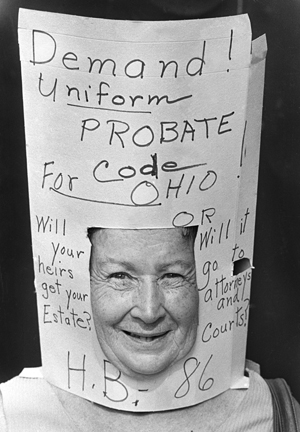 Of the more than 60 images in the show, Grier has a hard time picking favorites. Among the celebrities and politicians, though, he says one of a woman at the Butler County Fair wearing a political statement written on a reconstructed box on her head stands out in his memory. “It’s kind of like having a protest sign attached to your head,” he says. “It was great because it was something different.”