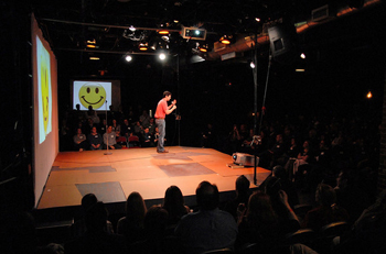 The Pantuso-Ostoich team were also the catalysts to bring Ignite – the local “franchise” of a speaker series growing across the country and newly front and center in the local group-share movement – to Cincinnati. Started in Seattle in 2006, Ignite describes itself with the tagline “Enlighten us, but make it quick,” a reference to its format: speakers are backed by twenty slides that automatically advance every fifteen seconds, allowing them five minutes to make their point. The first Cincinnati session debuted on January 20, 2010 at Know Theatre and saw one presentation spun off into an op-ed published in the Enquirer. The second session featured talks that were a mix of pure entertainment, such as P.G. Sittinfeld’s “The Happiest Person You Know” which described the traits of happy people, as well as more pitch-driven presentations including Candace Klein’s “Bad Girl Ventures.”