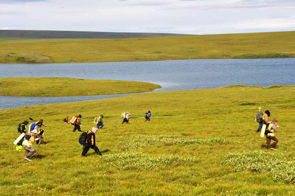 “Everyone on our teams goes through at least a week’s worth of wilderness-survival training,” Pape says. “And they have bear guards who accompany the survey team. Sometimes they have to use helicopters to get into locations, and then live in tents erected to support their effort.” The sometimes dangerous work has significant repercussions on not only current history, but even pre-history.