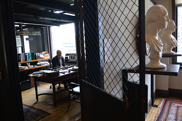 He’s saying this while seated in a comfortable chair facing a wooden table in a corner of the Library’s spacious reading room. It’s an agreeably relaxed and refreshing place. The windows let in light but not the industrial-strength noise from busy Walnut Street 11 floors below.