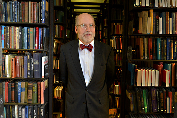 “When Albert started at the Library, there were only two other full-time employees,” Gruber recalls via e-mail. “From the beginning he was always quick to pitch in with whatever task needed doing. Members, and the occasional trustee, would be startled to see Albert — impeccably dressed in tailored suit, starched shirt and more often than not his signature bow-tie — moving furniture, stacking chairs and mopping up the occasional wine spill after a particularly rowdy event in the reading room. When questioned as to whether the work fell under his job description, he would always reply yes, under the category ‘Other duties as assigned.’”