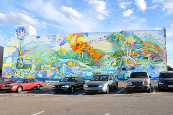 This is the 16th summer that ArtWorks has sponsored public art projects that do more than provide jobs and add a splash of color to neighborhoods. “These are real investments in community,” says Harkavy. In Covington, for example, the mural inspired new lighting for the parking lot as well as a concerted effort to keep the space clean.