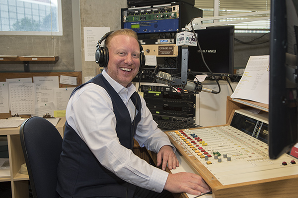 Aaron Sharpe is one of the longest-standing fixtures at WNKU — he started as a volunteer board operator in 1998 and went on to serve as one of the station’s core producers and on-air personalities, in addition to outside gigs deejaying for the Cincinnati Reds and serving as adjunct faculty at NKU.