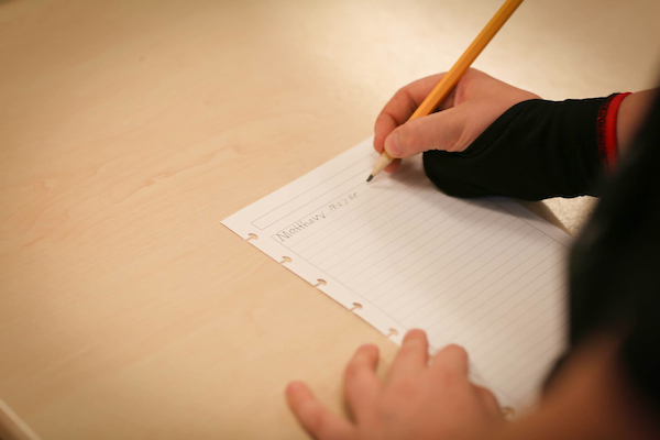 Eleven-year-old Matthew Meyer invented Grip Wizard (originally named Right-Writer) two years ago while struggling with his handwriting. Grip Wizard is a fabric strap holding the pinky and ring fingers to the palm, allowing students to master the tripod grip necessary for holding a pen or pencil. When Matthew and his mother Elizabeth realized how many other children were struggling with the same fine motor coordination, they decided to pursue making the Grip Wizard available to a wider audience.