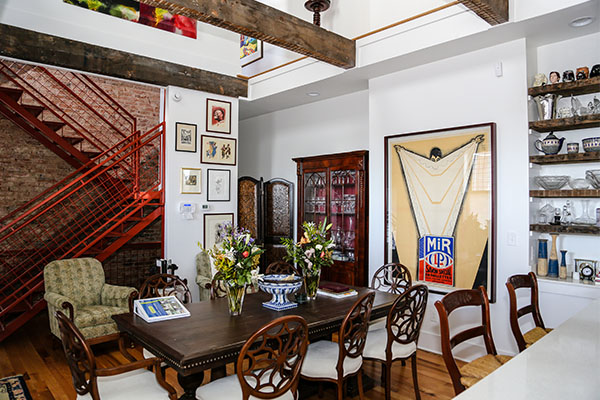 He could see himself as the “visionary” described in that article. When he saw the soaring renovated space at 221 Wade, he admits, “I got it.” It didn’t hurt that the three-story main living area offered a perfect setting for his collection of African American fine art and Israeli sculpture.