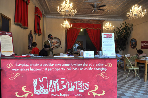 Since settling the studio in Northside in June of 2008, the program has experienced significant growth, with Ihrig and Rueff crediting increased visibility and the strong arts presence in the neighborhood in support. In fact, Ihrig indicated that Saturday traffic often reaches over five times what they would have experienced in prior locations. However, the Tacons are not the only indicator that Happen Inc’s success stretches beyond its studio space and the surrounding neighborhood. Between their physical space and off-site events, Rueff says, “We reach 13,000 people a year. And we’re planning to spend the next year expanding programming.” Rueff has already brought programming to local schools with the “ASAP: After School Arts Program” and hosted activities in community centers and at neighborhood events, and he is planning for further growth.