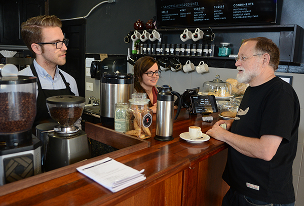 “He took me under his wing, so to speak, while I was running Rohs Street Cafe,” Stoneham says of Bourgeois’ personal and profession influence on him. “He put words and context to what had originally drawn me to become involved in coffee in the first place. Larry was a mentor of mine in the coffee industry, introducing me to experts around the country and teaching me everything he knew about espresso machines, the history and culture of espresso bars.