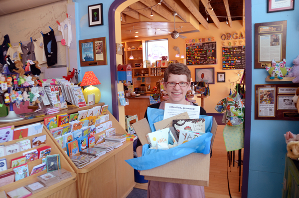 The Blue Manatee Children’s Book Store recently won a prestigious national toy award for an inventive approach to a product kids have long treasured, and gift-givers long puzzled over—a cardboard box.
