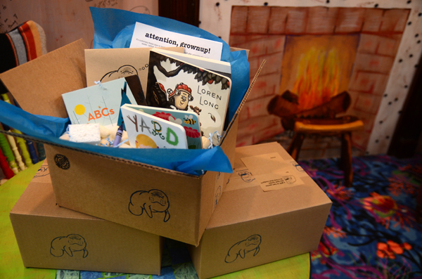 The gift boxes are filled with hand-picked and developmentally appropriate books. But instead of plastic or cellophane, the boxes are filled with biodegradable packing peanuts made from a corn-based material, a small sponge, a crayon and a set of instructions on how parents and kids can use the box to let their imaginations run wild.