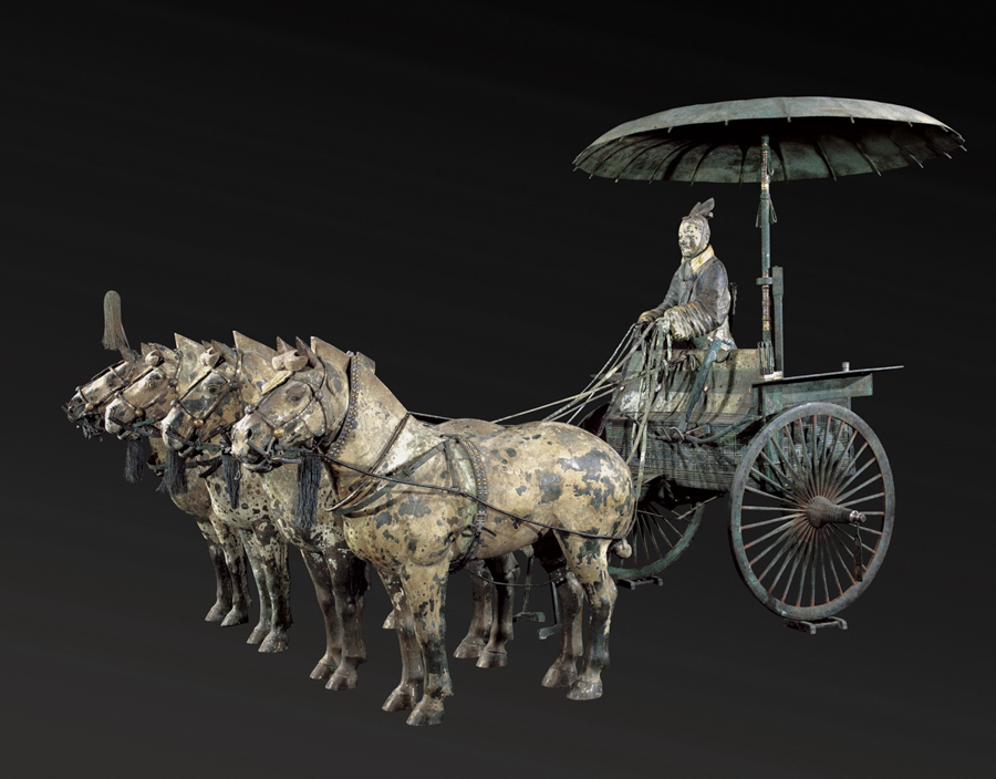 Beyond those innovations, Ying Zheng’s quest for immortality was realized in the form of an astonishing burial complex that was forgotten for more than two millennia. In 1974 farmers digging a well outside Xi’an discovered pottery shards and bronze arrowheads. Excavation revealed a massive archeological site. Even today only a quarter of the warriors have been reassembled.
