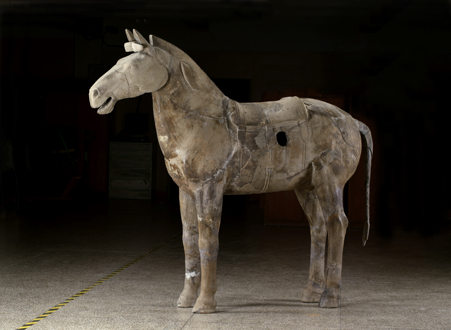 In addition to the warrior figures, the exhibition includes a gallery with 120 objects from 14 Chinese art museums and archeological institutes. On view are a cavalry horse, arms and armor, ritual bronze vessels and bells (the sound of one solemnly rings in this gallery), works in gold and silver, jade ornaments, precious jewelry and ceramics. Many items have never before been on view in the United States. They provide fascinating context for the terracotta soldiers.