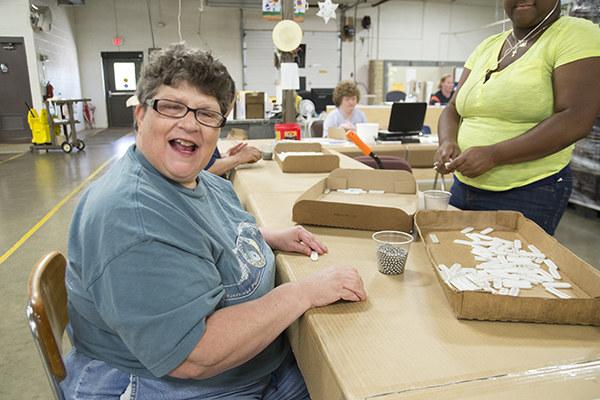 A second group of clients work in BAWAC’s warehouse space in the back of its 40,000-square-foot facility. They do subcontract assignments for 40-plus area companies outsourcing light industrial work like packaging, labeling and sorting.