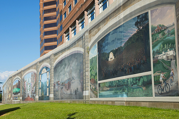 One more opportunity to see how visual arts celebrate Covington: Check out the Roebling Murals, along Riverside Drive on the Ohio River floodwall between Greenup and Scott streets. Between 2002 and 2007, muralist Robert Dafford supervised the ambitious painting of 18 large panels, tracing local history from 800 B.C. to the present. About halfway along the wall there’s a representation of none other than Frank Duveneck — bringing the story of art and community in Covington full circle.