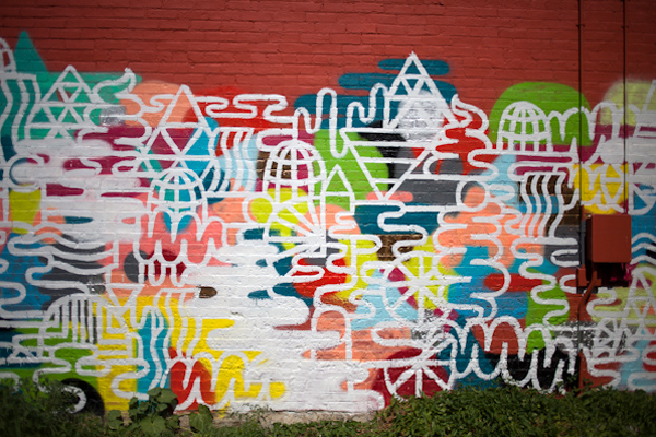While the park does not have the world-class landscaping and computer-controlled fountains found a few blocks to the west, what it does have is art. Specifically two wall murals by internationally known artists Matt W. Moore (Portland, ME) and Mike Perry (Brooklyn, NY), in addition to an ongoing, “found object,” telephone pole installation by neighboring resident David Forrest.