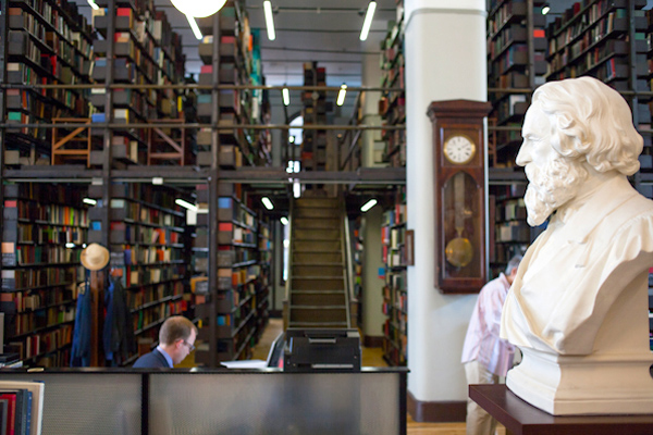 It is often referred to as the “Oldest Membership Library West of the Alleghenies,” which is just fun when anyone benchmarks their status as “West of the Alleghenies.”  In short, it’s a really cool, albeit literary, place (not that those two concepts are mutually exclusive), with circular cast iron staircases and classical marble statuary nestled amidst the stacks, all for a basic membership price of $55 per year.