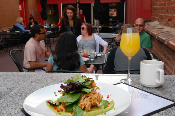 The Iris Café on Main Street has an urban oasis/garden in its back patio which is the perfect space to escape the hubbub of the city outside. Accessed by walking through the bookstore/café, the vine-covered walls and unique art installation is the perfect space to enjoy a bowl of soup and peruse a random book from the shelves.