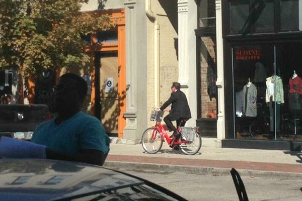 Then again, what are we to expect from a Mayor who believes bikes belong on trails and is photographed riding on sidewalks — illegally, I might add — as opposed to sharing the “major arteries” with motorists? What are we to expect when the perspective is that a bike ride is something you do by attaching bikes to the roof of a car and driving to a bike trail?