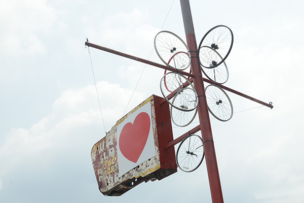 Mullaney says his sculpture, titled “Bike Love,” is a totem to help people consider bikes and the bicyclists while they traverse Central Parkway.