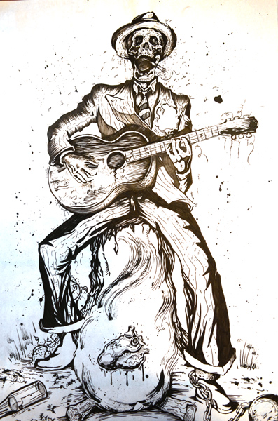 While his early work with Hank III embodies the intensity of the musician’s rage, Neltner’s work continues to evolve. His commission piece for Paleface, who has been described as a cross between Tom Waits and Neil Young, is downright lighthearted.