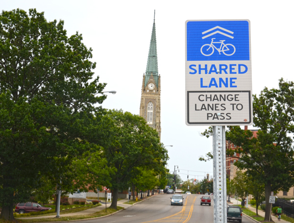Drivers who don’t know how to interact with cyclists create dangerous situations. The ideal situation would to have separate bike lanes everywhere, but Cincinnati has just over eight miles of bike lanes, and almost five miles of “sharrows,” markings that urge drivers to share the road.