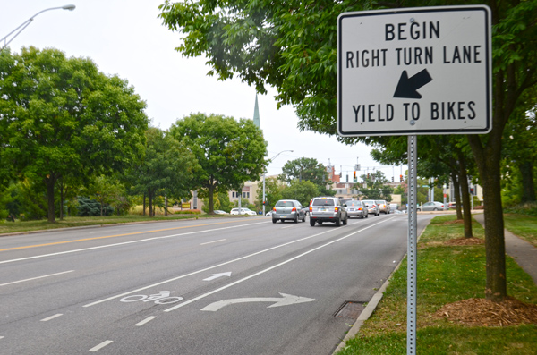 There is also a pilot project happening at Ludlow at Central Parkway, with painted bike lanes to make drivers aware they are crossing a bike lane.