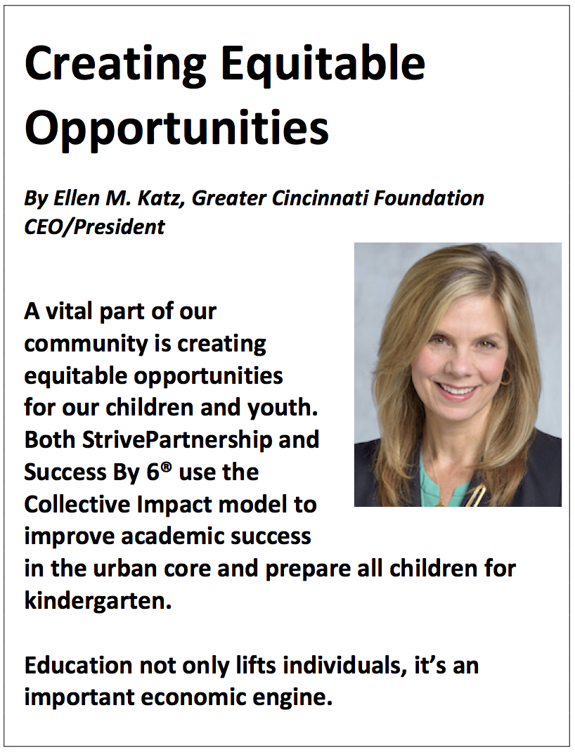 The hoped-for success of Preschool Promise will be the result of collaborations fostered by The Greater Cincinnati Foundation’s Collective Impact initiatives and their commitment to equity. As inspiring backbones, Success By 6® and StrivePartnership have used Collective Impact to bring together businesses, organizations in the social service and health sectors and educational communities to support Preschool Promise, an essential program for advancing our community’s quality of life.
