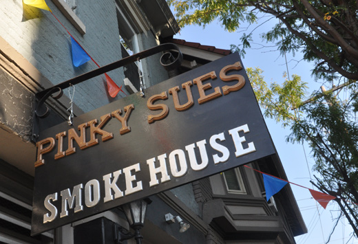 Pinky Sue’s Smoke House, named for the partners’ respective wives, seats about 40 people inside with room for another 20 to 30 people outside on their patio. Remley says that first-time customers should try the ribs, but that many people have been going after the slow-smoked pulled pork which can be ordered in a sandwich deal for around $6.