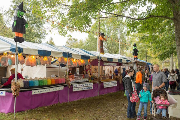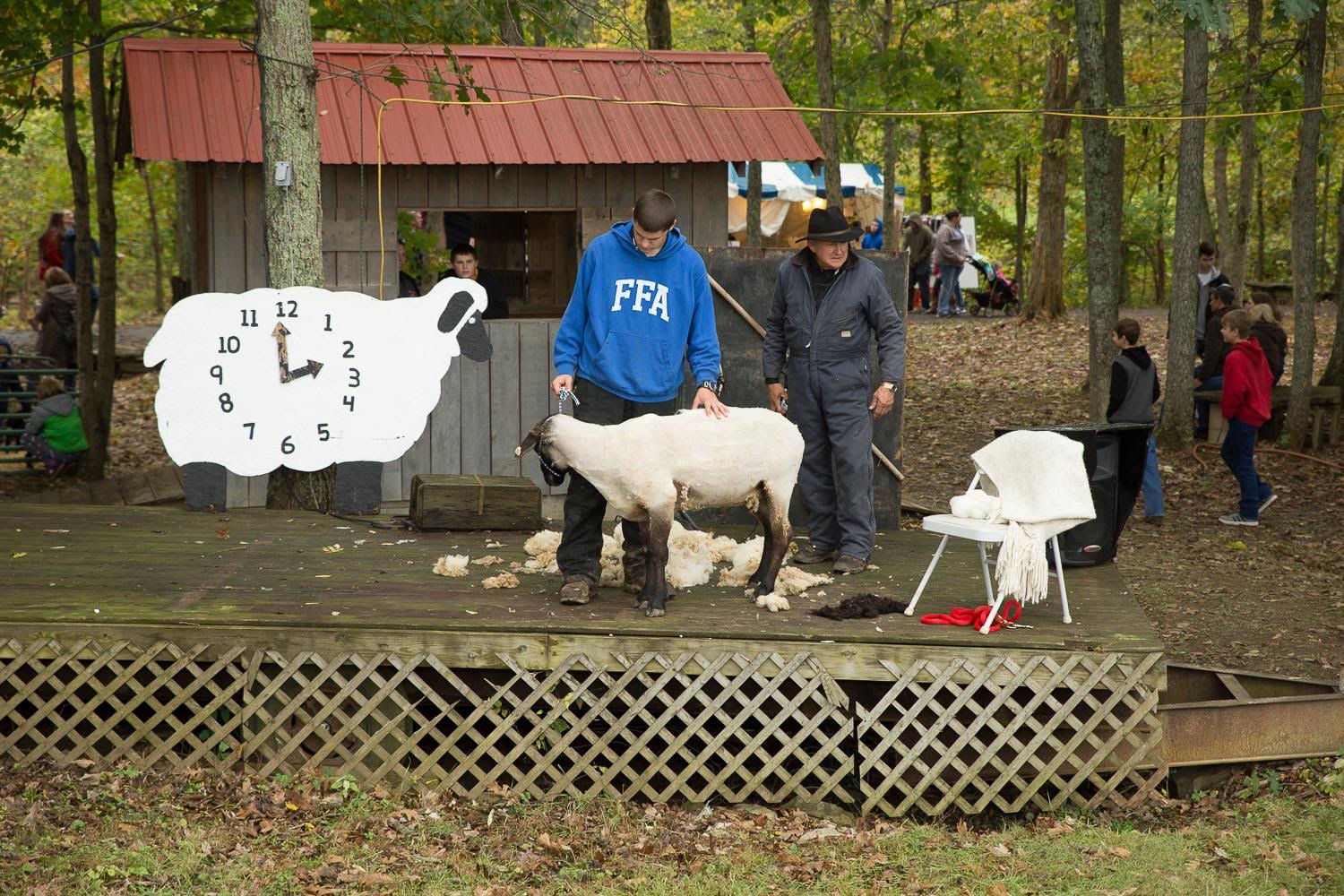 The festival, which takes place annually the first weekend in October, features live animals and petting areas, more than a hundred arts arts and craft booths, live bluegrass music, sheep-shearing demonstrations, local farm products, food vendors and historical reenactments.