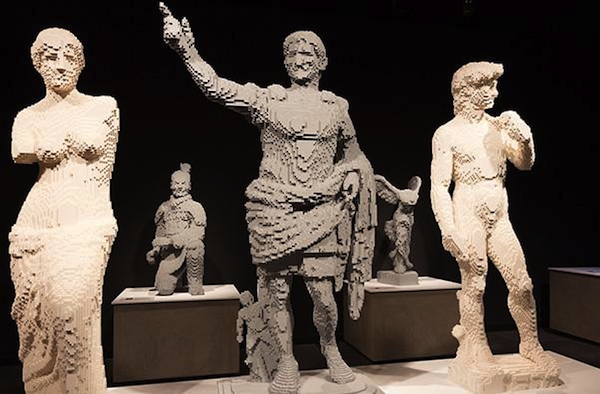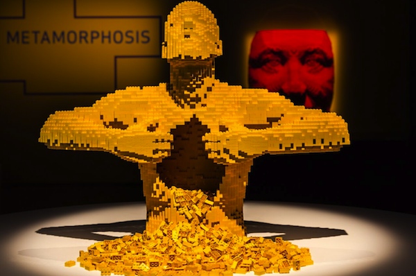 Although Sawaya’s work focuses on artistic subjects, the engineering and math elements usually associated with LEGO are still a factor. The free-standing pieces he creates must be self-supporting and made entirely of LEGO bricks. The exhibit includes several life size human sculptures, each made up of 15,000-25,000 LEGO pieces.