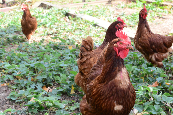 The other birds wander through the garden among the plants, finding bugs to snack on, tilling the soil with their beaks and fertilizing with their “Hershey kiss” shaped droppings.