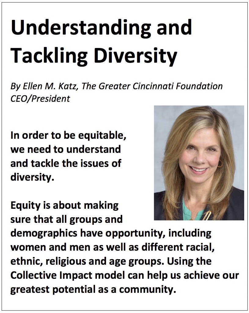 Diverse by Design has been supported by The Greater Cincinnati Foundation’s Collective Impact approach, which addresses issues and concerns beyond the means of any one organization in Cincinnati and Northern Kentucky. Numerous local organizations collaborate around a common vision and unify efforts through “backbone” entities that are championed and shaped with five years of funding from and helpful guidance by the Foundation. Participants adopt measurable goals and work to reinforce one another’s contributions.