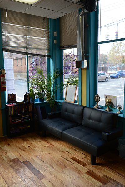 “We didn’t really have a décor in mind, we just had colors,” Byrd says. The teal walls represent the aquatic part of Sweet Sistah Splash; lavender was chosen because it is a hue of their favorite color, purple. Red exemplifies power. A yellow accent wall and bright hardwood floors add a feeling of expansiveness.