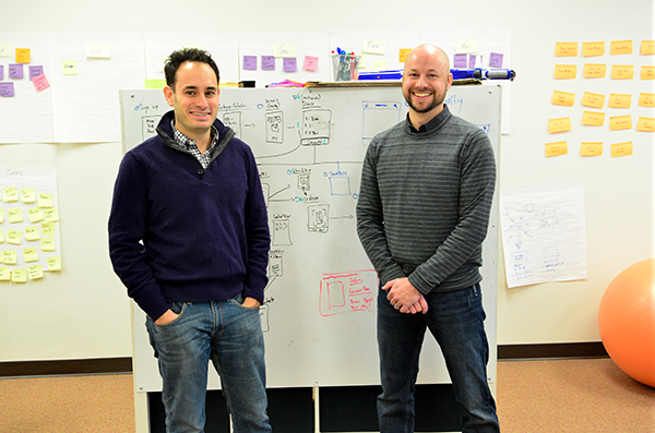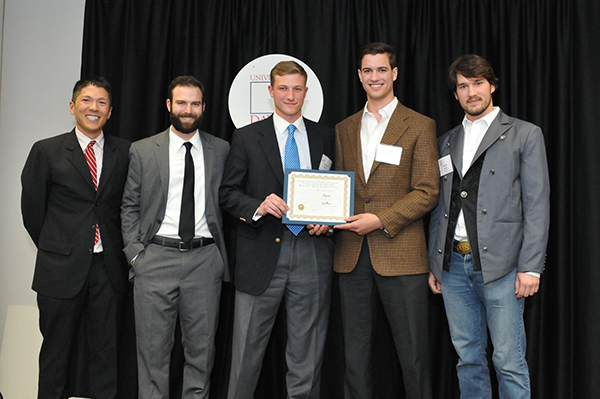 Lagoon Founders from Right to left: Nathan Heidt CTO, William Blum CCO, William Wiebe COO, Eric Elias CEO – Far left is a judge from the University of Dayton Business Plan Competition. (provided)
