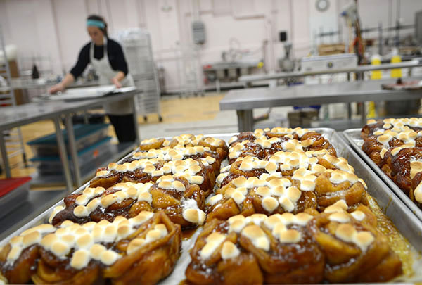 She had to have the wooden gym floor reinforced with concrete along paths where massive ovens and freezers now sit and add drainage in the floor, all the while maintaining production to fill product demand from her storefront in Findlay Market and Internet orders.