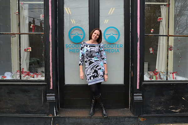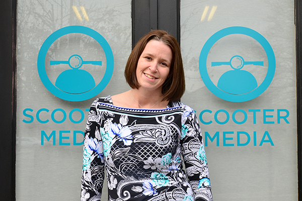 Boyer’s venture into the world of self-employment can be traced back to her work with the Northern Kentucky Chamber of Commerce, where she first discovered her passion for public relations. From there, she worked for Wordsworth Communications as account supervisor and director of social media for seven years. In 2010, she ended up at the largest multidisciplinary arts organization in Northern Kentucky, The Carnegie. Boyer spent a couple of years at The Carnegie before beginning Scooter Media in February 2012. Today, her local client list includes Brazee Street Studios, Blue Manatee Children’s Bookstore and Decafé, Reach Magazine, Fidelity Investments, Sleepy Bee Café and, much to Boyer’s delight, The Carnegie.