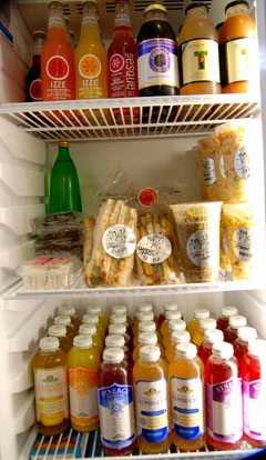 Korman opened his store a little over a year ago. Recently he started offering sandwiches, noodles and other foods from Melt and Donna’s Delights. They’re housed in a small refrigerator near the checkout. He also sells vegan marshmallows (made without gelatin), and organic whole-wheat scone mix.